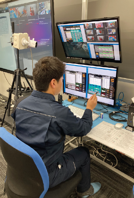 ダムグラウチングにおいて、注入予定、注入状況、施工状況マップ、グラウト管理日報が遠隔地からもリアルタイムで確認できるシステムを適用しています。現地の状況を WEB カメラで確認することも可能です。また、地層情報も含めた3次元モデルに注入情報を表示し、見える化しています。